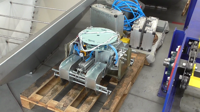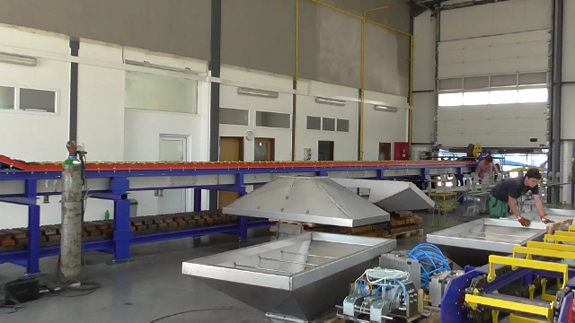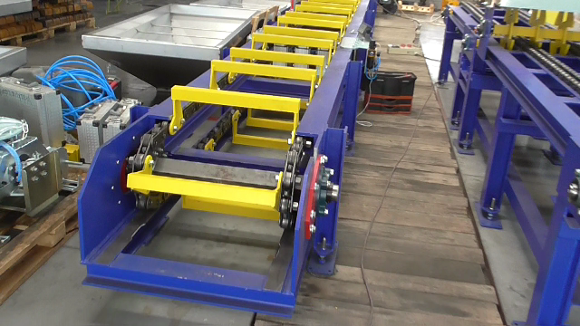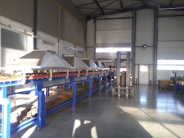 Automatická odlievacia linka na výrobu ingotov z neželezných kovov s nízkym bodom tavenia. Zariadenie pomocou dávkovacej hviezdice distribuuje tekutý kov do foriem ktoré sú chladené vodou na požadovanú teplotu.Po zatuhnutí kovu sú ingoty vyklopené z foriem, označené a pomocou robotického ramena stohované na dopravníku. Hmotnosť stohovaných ingotov je na výstupe kontrolovaná váhou a ingoty sú následne viazané páskou a pripravené na expedovanie.